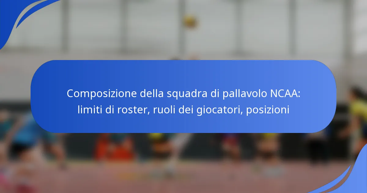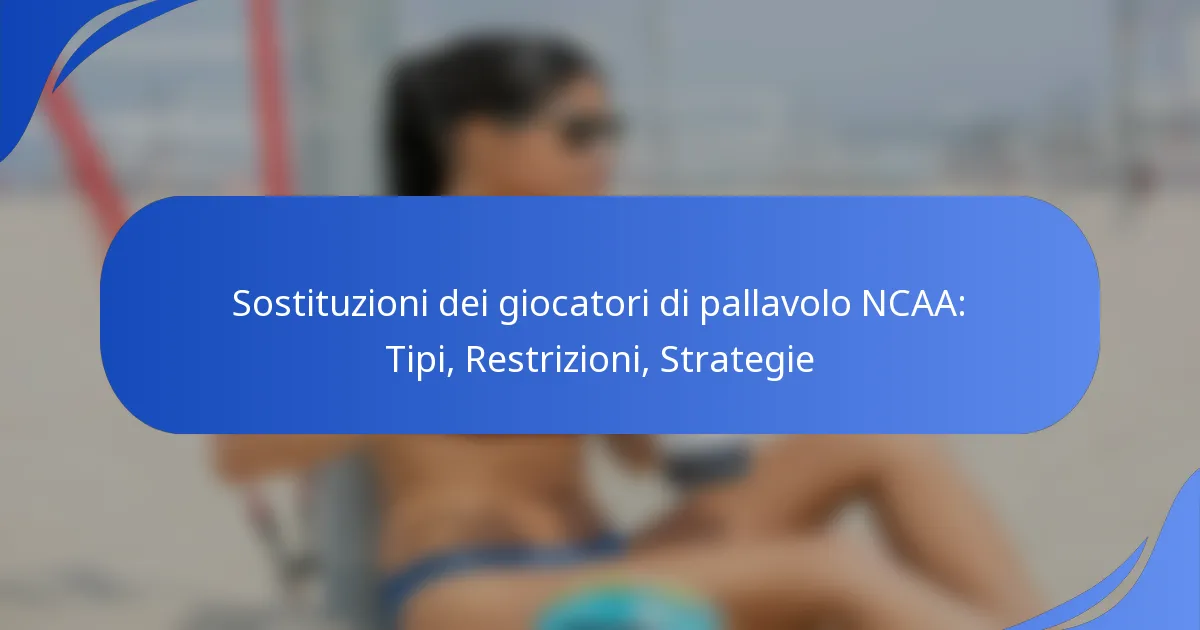 Il volley NCAA presenta una varietà di sostituzioni dei giocatori che sono regolate da regole e strategie specifiche essenziali per una gestione efficace del gioco. Con restrizioni sul numero di sostituzioni consentite per set, le squadre devono considerare attentamente il tempismo e gli accoppiamenti per ottimizzare le prestazioni. Padroneggiare queste tecniche di sostituzione può avere un grande impatto sul successo di una squadra in campo.